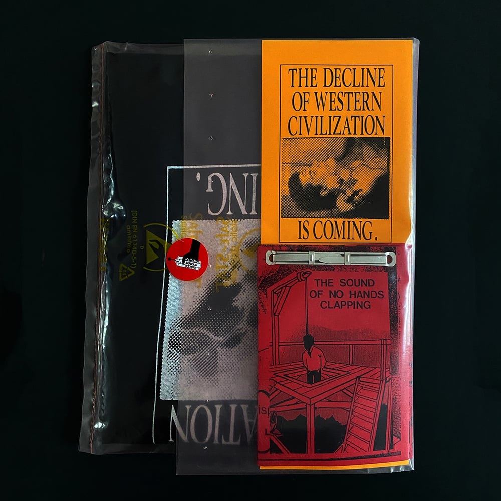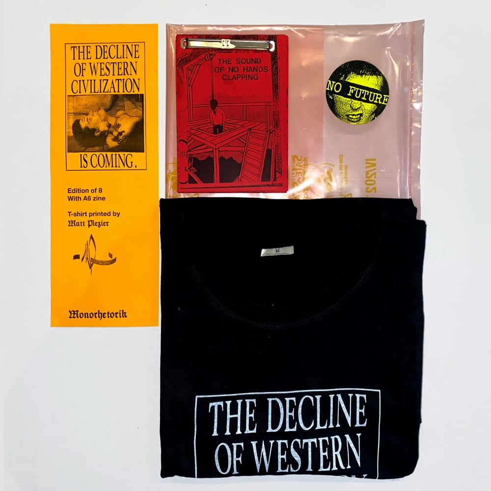T-Shirt with 42 page A6 sized copied zine with images from 80's Hardcore punk zines.